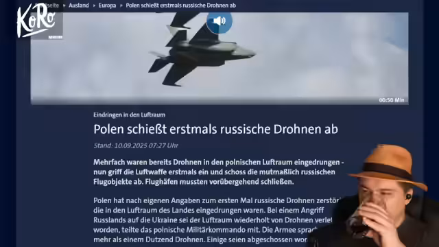 01:05:35Die Wahrscheinlichkeit, dass Russland absichtlich den polnischen Luftraum verletzt, wird als realistisch eingeschätzt, da die Anzahl der Drohnen dafür zu hoch sei, um Zufall zu sein. Es wird ein erneuter Trump-Putin-Zyklus festgestellt, in dem Trump wiederholt mit Putin telefonieren möchte. Es wird spekuliert, dass Trump in einer Woche wieder in den "Taco-Modus" verfallen könnte, in dem er die Ukraine beschuldigt und einen möglichen Rückzug andeutet. Die Verschwörungstheorie, dass Deutschland die Ukraine zu einem Angriff auf Russland getrieben habe, wird als absurd abgetan, ebenso wie die Vorstellung, dass die CIA den Euromaidan ausgelöst habe. Die Aussage von Victoria Nuland, dass die größte Oppositionspartei die Übergangsregierung in der Ukraine kontrollieren sollte, wird als wenig überraschend dargestellt. Der polnische Ministerpräsident Tusk bezeichnet die Lage als ernst und spricht von einer möglichen Provokation, woraufhin die EU-Kommission eine Drohnenabwehr an der Ostflanke fordert. Es wird die Frage aufgeworfen, warum diese Forderung erst jetzt kommt und dass Estland, Litauen, Lettland, Finnland und Rumänien wahrscheinlich bereits Maßnahmen ergreifen. Es wird erwähnt, dass Friedrich Merz angeblich 12.000 Euro für Frisur und Make-up ausgegeben hat, was angesichts regelmäßiger Auftritte als nachvollziehbar erachtet wird. Die Vorstellung, dass Russland Polen überfallen könnte, wird als Größenwahn abgetan, da Russland bereits in der Ukraine stark engagiert ist und Polens Militär stark investiert.
