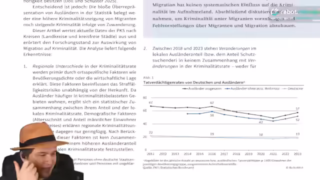 01:46:41Die Diskussion um die umstrittene Äußerung von Friedrich Merz zum 'Stadtbild' wird als sinnlos und rassistisch eingestuft. Der Streamer kritisiert, dass solche Themen von den drängenderen Problemen in Deutschland ablenken. Zudem werden Widersprüche in der Außen- und Innenpolitik thematisiert, wie Merz Türkei-Besuch ohne klare Kritik an Menschenrechtsverletzungen oder die unterschiedliche Kommunikation innerhalb der Regierung bezüglich Abschiebungen nach Syrien, was als 'Fiebertraum' und 'Scheinkonflikt' bezeichnet wird.