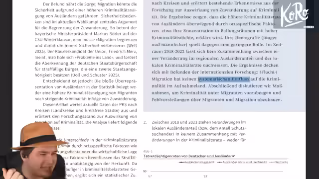 02:51:00Der Streamer überlegt, in Zukunft Fake-News-Kanäle auf YouTube zu zerlegen, um Interaktionen zu fördern. Er erwähnt dabei die Möglichkeit, sich über Kanäle wie 'Horst und Hopf' lustig zu machen, sieht aber den Zeitpunkt noch nicht gekommen, da der Kanal erst noch wachsen und empfohlen werden muss. Er betont, dass es nicht um Clickbait geht, sondern um das Widerlegen von Fake News. Währenddessen bemerkt er, dass er vergessen hat, die Aufnahme zu starten, was er humorvoll als 'Genius' bezeichnet. Die Diskussion leitet über zu einer Reportage von Arte mit dem Titel 'Colorado Migranten unter Druck', die die Situation illegaler Einwanderer in den USA beleuchtet, insbesondere nach der Wiederwahl von Donald Trump.