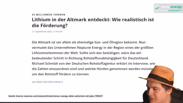 04:54:58Der Blog-Eintrag wendet sich einem positiven Thema zu: einem potenziell weltweit größten Lithium-Vorkommen in Deutschland, genauer gesagt in der Altmark in Sachsen-Anhalt. Dieses Vorkommen könnte theoretisch eine Milliarde E-Autobatterien versorgen und Deutschland unabhängiger von China machen. Die Firma Neptune Energy hat den Fund gemacht, der auf 43 Millionen Tonnen Lithium-Carbonat-Äquivalent geschätzt wird. Trotz der vielversprechenden Zahlen gibt es Herausforderungen, insbesondere die Messunsicherheit der frühen Hochrechnungen und die Gewinnung des Lithiums aus einer Salzlösung tief in der Erde mittels Direct Lithium Extraction (DLE). Dieses Verfahren ist zwar umweltfreundlich, aber noch relativ neu, energieintensiv und die Skalierung erweist sich als schwierig. Der Preisverfall von Lithium wird ebenfalls als Faktor genannt, der die Wirtschaftlichkeit beeinflusst. Es wird betont, dass Lithium nicht selten ist, sondern die Gewinnung oft komplex.