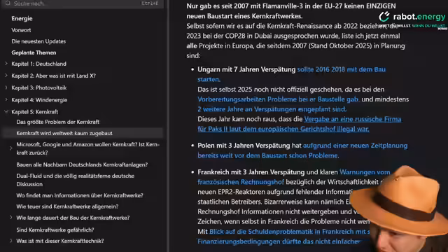 00:18:39Der Blog-Autor beginnt den Stream mit einem Überblick über aktuelle Projekte, darunter einen längeren Beitrag zur Kernkraft, der das Selbstkannibalisierungsproblem beleuchtet und Argumente gegen neue Kernkraftwerke sammelt. Dieser Beitrag soll die Verzögerungen und Probleme bei Kernkraftprojekten aufzeigen und wird voraussichtlich bald fertiggestellt. Des Weiteren wird eine positive Entwicklung im deutschen Stromnetz erwähnt: Eine neue 380-KV-Freileitung wird in Ostdeutschland zwischen Sachsen und Thüringen aufgebaut, die bis zu 40% mehr Strom transportieren kann. Dies wird als wichtiger Schritt für den Stromausbau und potenziell günstigere Strompreise in der Zukunft betrachtet. Zudem berichtet der Autor über eine persönliche Erkenntnis bezüglich des Einspeisevorrangs für erneuerbare Energien in der EU. Es stellte sich heraus, dass seit 2020 in allen 27 EU-Ländern für Neuanlagen kein Einspeisevorrang mehr besteht, was ein häufig genutztes Argument gegen erneuerbare Energien entkräftet. Dies wurde im Zuge von Recherchen über das spanische Stromnetz und dessen Maßnahmen zur Blackout-Vermeidung entdeckt, wobei Spanien nun Solaranlagen und Windkraftanlagen mit Speichern priorisiert behandelt, um die Netzstabilität zu erhöhen.
