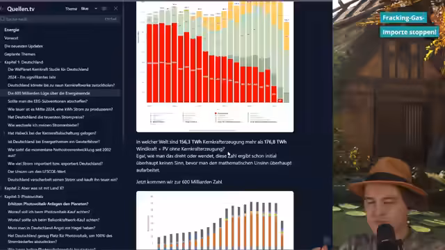 00:12:04Der Stream beginnt mit technischen Anpassungen und einer Vorstellung des Kanals 'dracon'. Der Streamer, Drakon, erklärt, dass er sich auf aktuelle Ereignisse, insbesondere Energie- und Wirtschaftsthemen, spezialisiert hat. Er führt seine Quellenliste mit über 120.000 Wörtern als umfassende Wissensgrundlage an und betont seinen Fokus auf Fakten und das Aufklären irreführender Informationen, auch im Kontext von Rechtsstreitigkeiten.