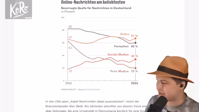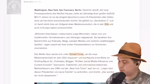 00:38:53Ein weiteres zentrales Thema ist die radikale Veränderung der Medienlandschaft in den USA. Unter der Führung von Pressesprecherin Carolina Hurley wird das Weiße House seine Strategie anpassen und Podcaster, Blogger und Influencer bevorzugt in die erste Reihe der Briefings einlassen. Der Streamer analysiert diesen Schritt als Reaktion auf das sinkende Vertrauen in traditionelle Medien und die massive Verlagerung der Nachrichtenrezeption junger Generationen in den sozialen Medien, was eine grundsätzliche Verschiebung des politischen Diskurses bedeutet.