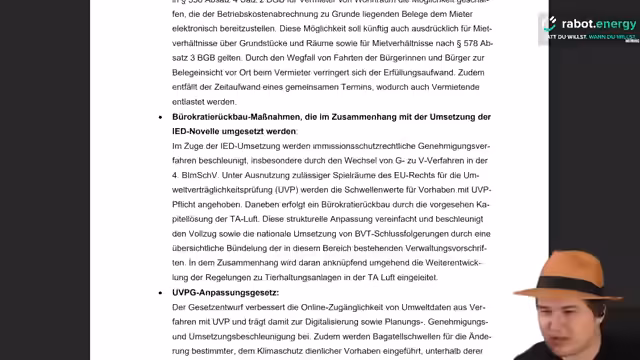 00:46:47Zukünftige Pläne der Bundesregierung umfassen das Gebäudetyp-E-Gesetz zur Vereinfachung von Baustandards und die Novellierung der Fernwärmeverordnung zur Entlastung von Netzbetreibern und Immobilienwirtschaft. Besonders kritisch wird die geplante Abschaffung von Nachhaltigkeitsberichterstattungen (CSRD und CSD) für die meisten Firmen gesehen, da dies nach jahrelangen Verhandlungen über deren Einführung als kontraproduktiv erscheint. Auch die Vereinfachung des Wohngeldes wird mit Skepsis betrachtet. Die Digitalisierung der Fluggastabfertigung zur Beschleunigung von Abläufen an Flughäfen wird ebenfalls angekündigt, wobei unklar ist, welche konkreten Vereinfachungen noch möglich sind, da der Online-Check-in und automatisierte Passkontrollen bereits existieren. Die Ankündigung, 'Datensilos aufzubrechen' und eine zentrale Datenhandstelle einzurichten, weckt ebenfalls Zweifel an der praktischen Umsetzbarkeit und dem Nutzen. Insgesamt bleibt eine gewisse Skepsis gegenüber vielen dieser angekündigten Digitalisierungs- und Entbürokratisierungsmaßnahmen, da ähnliche Versprechen in der Vergangenheit oft nicht vollständig eingelöst wurden.