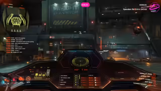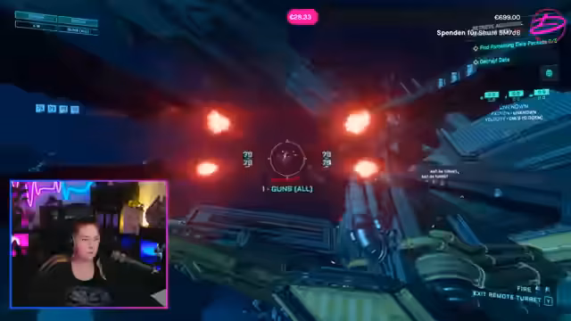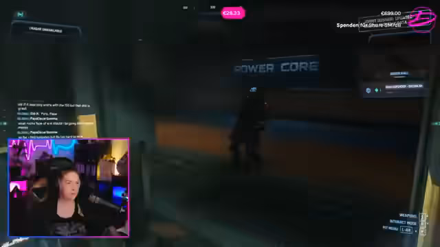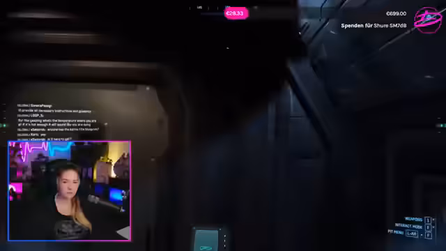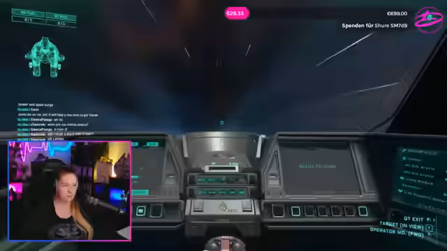 07:13:30Die Streamerin untersucht verschiedene Waffensysteme ihres Schiffes, insbesondere die Turrets und deren Steuerung. Sie erklärt, dass die seitlichen Waffen von sitzenden Crewmitgliedern bedient werden können, während der Co-Pilot für die obige Waffe zuständig ist. Es werden Unterschiede zwischen den Waffengrößen und die Einschränkungen bei der Waffenrüstung diskutiert, da größere Waffen nicht immer an kleineren Hardpoints montiert werden können, obwohl dies zukünftig geplant sein könnte.