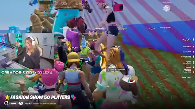 09:44:44Der Contest 'Fashion Show' beginnt, an dem etwa 45 Teilnehmer teilnehmen. Es wird eine neue Map geladen und der Streamer erklärt die Regeln: die Teilnehmer müssen sich nach von ihm vorgegebenen Themen spontan umziehen und posieren. Das erste Thema lautet 'am Strand in der Türkei', wobei die Krone auf der Map nicht von den Teilnehmern aufgehoben werden darf. Der Streamer bewertet die Outfits nach persönlichem Geschmack.