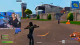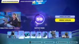 00:56:02Nach der aufreibenden Performance kühlt sich der Streamer ab und wechselt das Thema. Der angedachte Fortnite-Start verzögert sich durch ein technisches Problem, bei dem ein Power Tank nicht richtig aufgepustet werden kann. Schließlich beginnt das Spiel, und der Streamer tritt einem Duo-Spiel bei, in dem er mit einem Zufalls-Partner, der sich Norman nennt, gegen andere Spieler antreten muss.