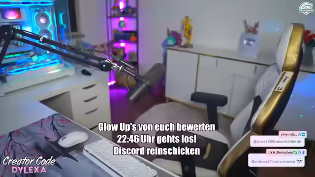 dylexa zelebriert ihren Geburtstag mit einem gemeinsamen Stream und spricht offen über gesundheitliche Herausforderungen, Panikattacken und verletzende Kommentare. Es gibt eine Diskussion über die ideale Haarfarbe und Probleme mit der Garderobe. In Fortnite wird über Abstürze und Zeitverschwendung geklagt, während Community-Runden geplant werden.
