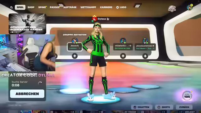 01:20:22Es wird überlegt, Community-Runden im Blitz-Royale-Modus zu veranstalten, um einen bestimmten Skin freizuschalten, der durch das Spielen dieses Modus erhältlich ist. Zuschauer werden aufgefordert, Beitrittsanfragen zu senden, um an den Runden teilzunehmen. Es wird erwähnt, dass man zu sechst spielen kann. Einige Zuschauer werden namentlich erwähnt und eingeladen, mitzuspielen, darunter auch ein Supporter. Es gibt kurzzeitig Verwirrung, weil sich die Streamerin verklickt und ungewollt tanzt. Anschließend wird über die Pickaxe gesprochen und ob man im Stream den Fortnite-Hintergrund sehen kann. Es wird überlegt, wo man landen soll und ob es ohne Bauen ist.