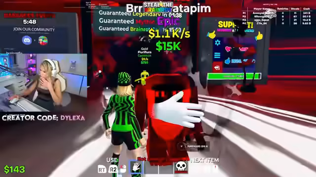 01:31:55Es wird der Wunsch geäußert, wieder Customs mit Preisgeld zu veranstalten, aber es wird befürchtet, dass zu wenige Leute mitmachen würden, was den Aufwand nicht lohnen würde. Stattdessen sollen Community-Runden gespielt werden. Die Streamerin äußert Neugierde über das Spiel "Steal the Brain Rot" und beschließt, es auszuprobieren, obwohl sie nicht weiß, was es ist. Es wird festgestellt, dass man in diesem Spiel Tiere sammeln muss. Es wird versucht, das Spielprinzip zu verstehen, indem man Geld verdient und Tiere kauft, um mehr Geld zu generieren. Es wird überlegt, ob es das Ziel ist, einfach so viel Geld wie möglich zu machen. Es wird der Wunsch geäußert, Minispiele mit den Zuschauern zu spielen.