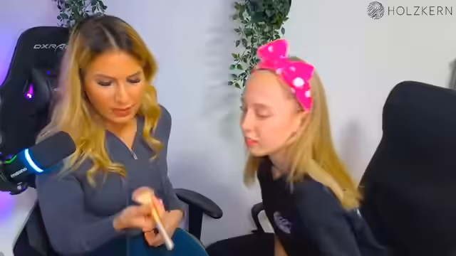 00:11:38Die Streamerin beginnt mit dem Schminken von Sophia, wobei sie feststellt, dass nur sehr wenige Produkte zur Verfügung stehen. Sie äußert Bedenken, da sie noch nie zuvor jemanden professionell geschminkt hat, außer für einfache Anwendungen. Es wird versucht, die Haare von Sophia zu stylen, wobei das Fehlen eines Haarreifens oder ähnlicher Hilfsmittel das Prozedere erschwert. Die Streamerin versucht, Contouring auf Sophias Gesicht aufzutragen und bemerkt, wie ungewohnt es ist, jemand anderen zu schminken. Es kommt zu einer humorvollen Interaktion mit dem Chat, der Kommentare über das Aussehen der Schminke abgibt. Die Streamerin betont, dass Sophia kaum Schminke benötigt, da ihre Haut bereits sehr gut ist.