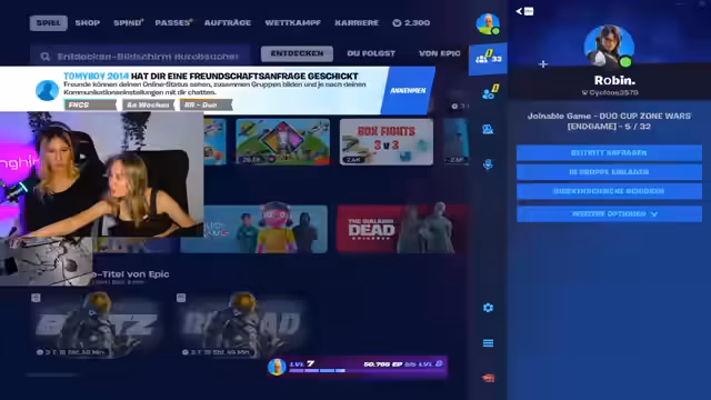 01:20:46Der Stream beginnt mit einer lockeren Atmosphäre, in der über die Namensgebung von Zuschauern und die Interaktion mit der Community gesprochen wird. Es wird erwähnt, dass die Streamerin Sophia (swjnghin) ihren TikTok-Mod vorstellt, der ebenfalls im Stream anwesend ist. Es gibt Versuche, Zuschauer in die Spielrunde einzuladen, wobei jedoch technische Probleme mit dem Spielmodus 'Battle Royale' auftreten, der anscheinend nicht verfügbar ist. Die Streamerinnen versuchen, verschiedene Freunde einzuladen, um das Problem zugehen, was zu humorvollen Verwechslungen und Missverständnissen führt. Die Suche nach einem funktionierenden Spielmodus und die damit verbundenen Einladungen von Community-Mitgliedern, wie 'Melone' und 'Bendy', gestalten sich schwierig und führen zu weiteren amüsanten Situationen. Die technische Schwierigkeit mit dem Spielmodus zieht sich durch diesen Abschnitt und sorgt für Unterhaltung, da die Streamerinnen und ihre Gäste improvisieren müssen.