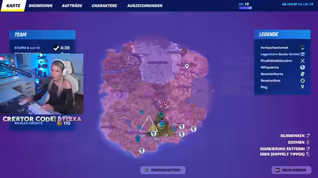 01:10:28Als Hauptspiel wird bald GTA-RP vorgesehen, da das bisher gespielte Spiel an Attraktivität verloren habe. Um den Stream abwechslungsreicher zu gestaltet, werden verschiedene Spiele getestet. Im Stream wird eine Runde Fortnite gestartet, bei der es eine Challenge gibt: für jeden Kill im Spiel werden drei Euro verdient. Auch Community-Mitglieder werden zum Mitspielen eingeladen.