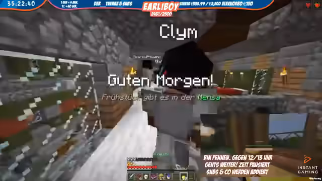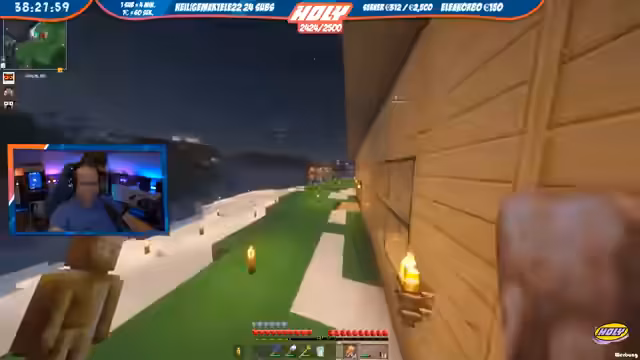 22:38:59Ein Spieler namens Stegi wird vor der Basis gesichtet, was zu Misstrauen führt, da er behauptet, nur auf der Durchreise zu sein. Die Gruppe vermutet, dass er spioniert, und es wird beschlossen, ihn anzugreifen. Gleichzeitig werden Diskussionen über Spielmechaniken und Regeln geführt, insbesondere über die Erlaubnis von Texture Packs, die Erze hervorheben. Die Frage, ob solche Packs einen unfairen Vorteil bieten, wird aufgeworfen. Auch ein technisches Problem mit Villagern, die keine goldenen Karotten mehr verkaufen und sich nicht mehr aktualisieren lassen, wird angesprochen, was auf einen Bug im Spiel hindeutet.