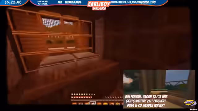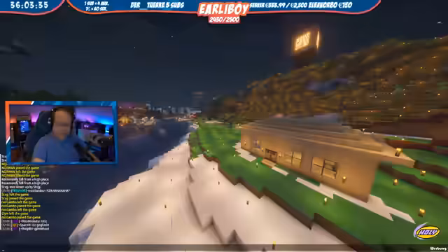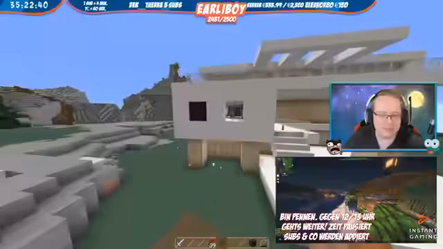 24:08:10Der Streamer bewertet die Häuser verschiedener Spieler in seiner Höhle. Early Boy wird gefragt, ob er für einen Sub ein Haus bauen möchte und nimmt den Job an. Uro Talks präsentiert sein Steinmetz-Haus, das in einen Berg gebaut ist und ein Zwergen-Thema hat, inklusive eines kleinen Krans und Transportkarren. Er veranschlagt 15 Subs für zwei Stunden Arbeit plus Materialkosten. Felika präsentiert ihr Wassermühlen-Haus, das als das beeindruckendste in der Mine bezeichnet wird. Der Streamer ist von der Farbpalette, den Details wie Glowberries und dem funktionalen Design begeistert. Felika erhält für ihr aufwendiges Bauwerk 25 Gifted Subs, was 100 Euro entspricht, und ihre Materialien darf sie behalten. Uro Talks erhält 15 Subs für sein Haus. Die Häuser von Blizzo (10 Subs), Early Boy (1 Sub) und Fuchse (5 Subs) werden ebenfalls erwähnt.