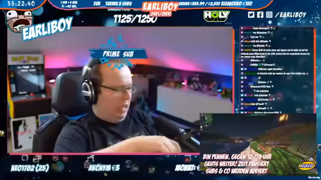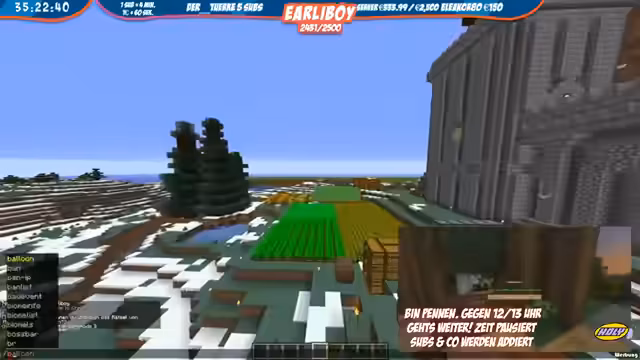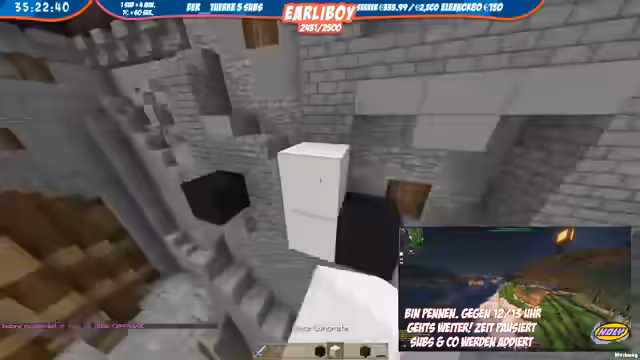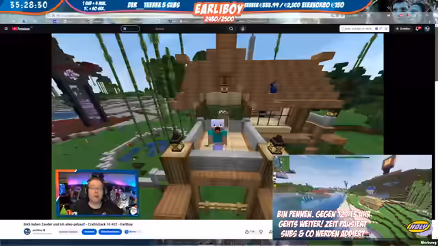 07:35:21Es wird über den Bau eines Schornsteins gesprochen, der aus Andesit und Smoothstone besteht. Der Streamer erwähnt, dass er diese Materialien in großen Mengen besitzt. Ein anderer Spieler fragt nach dem Fortschritt seines Halbtrains und der Reparatur seiner Mob-Farm, die drei Abonnements für die nächsten Level einbringen soll. Die Unterhaltung dreht sich auch um die Platzierung eines Beacons, wobei die Herausforderung darin besteht, einen dekorativen Platz in einer Basis zu finden, die nicht auf Ein-Block-Design ausgelegt ist. Es wird vorgeschlagen, den Beacon mit Teppichen zu verstecken und den Strahl mit Glas zu färben. Die Schwierigkeit, unter Wasser zu bauen, wird thematisiert, insbesondere das Problem der Atmung ohne einen Aquakondensator. Die Beschaffung von Materialien für einen Aquakondensator, wie Prismarinblöcke und Nautilus-Schalen, wird diskutiert. Es wird erwähnt, dass Nautilus-Schalen leicht von Ertrunkenen zu erhalten sind, besonders wenn man unter Wasser baut.