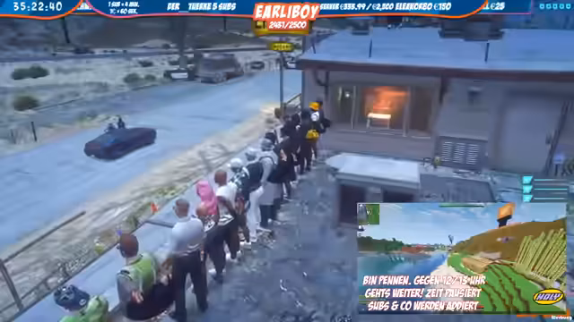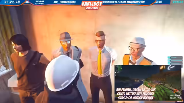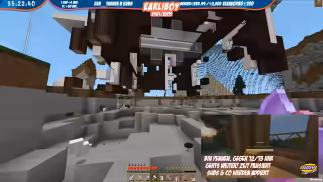 21:48:38Der Start der neuen Staffel ist von Chaos und Panik geprägt. Die Spieler finden sich in einer unübersichtlichen Situation wieder, in der sie sich fragen, wie sie sterben werden und wie viele FPS sie haben. Es wird schnell klar, dass es keine Zeit zum Vorbereiten gibt, da die Nacht hereinbricht und Unsichtbarkeitseffekte im Spiel sind. Die Spieler versuchen, sich schnell Holz zu beschaffen und sich zu orientieren. Es wird festgestellt, dass viele Leute am Wasser sind und dass bereits erste Tode zu beklagen sind. Die Spieler versuchen, sich in Sicherheit zu bringen und eine erste Basis zu errichten. Es wird die Idee geäußert, sich nach unten zu graben, um Steine abzubauen und Fackeln herzustellen. Die Gruppe ist in zwei Teams aufgeteilt: ein Team, das unter der Erde farmt, und ein Team, das an der Oberfläche Ressourcen sammelt. Es gibt Verwirrung über die Positionen der anderen Spieler und die Frage, ob Kisten geplündert wurden. Die Situation wird als chaotisch beschrieben, und es wird über einen möglichen Server-Reset aufgrund der aufgetretenen Probleme diskutiert. Es wird entschieden, dass die aktuelle Runde als "Peaceful-Folge" dient, in der fehlende Gegenstände am nächsten Tag ersetzt werden. Die Spieler konzentrieren sich darauf, Ressourcen zu sammeln und sich für den nächsten Tag vorzubereiten. Die Anwesenheit anderer Spieler in der Nähe sorgt für zusätzliche Spannung und Unsicherheit.