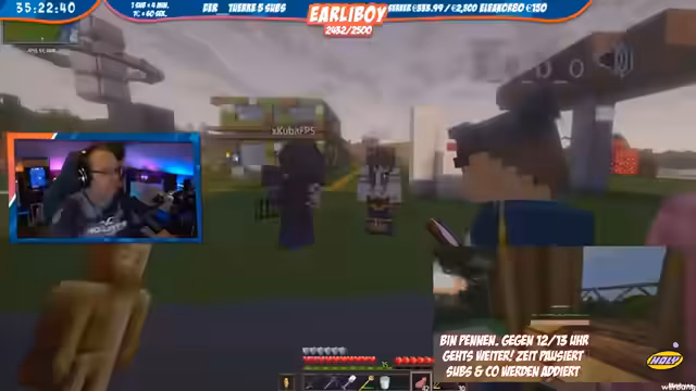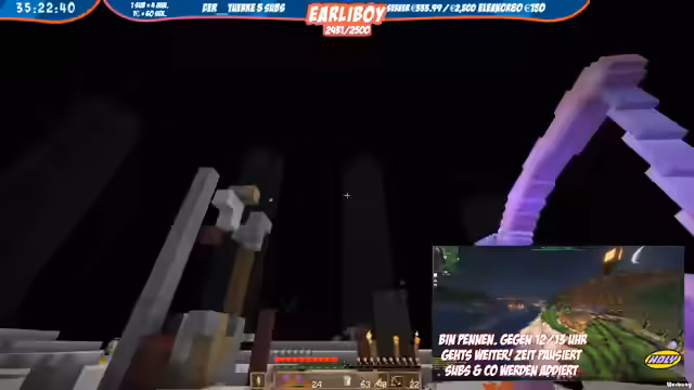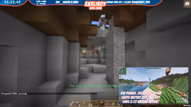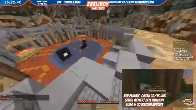 22:08:09Die Situation ändert sich abrupt, als Mobs unerwartet wieder spawnen, was zu Verwirrung und Panik führt, da Spieler plötzlich von Gegnern umzingelt sind. Die Gruppe empfindet es als unfair, dass die Mobs ohne Vorwarnung auftauchen. Es wird berichtet, dass ein Spieler namens "Eiferstein" bereits zum dritten Mal gestorben ist, was seine scheinbar unbegrenzten Leben infrage stellt. Währenddessen versuchen einige Spieler, ihre Kisten und eine improvisierte Basis zu verteidigen. Die Notwendigkeit, sich zu sammeln und eine Strategie zu entwickeln, wird betont, da die Kommunikation innerhalb der Gruppe schwierig ist und die Bedrohung durch Mobs zunimmt.