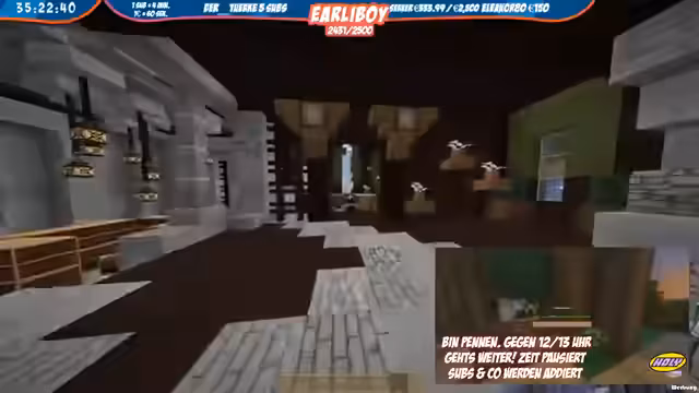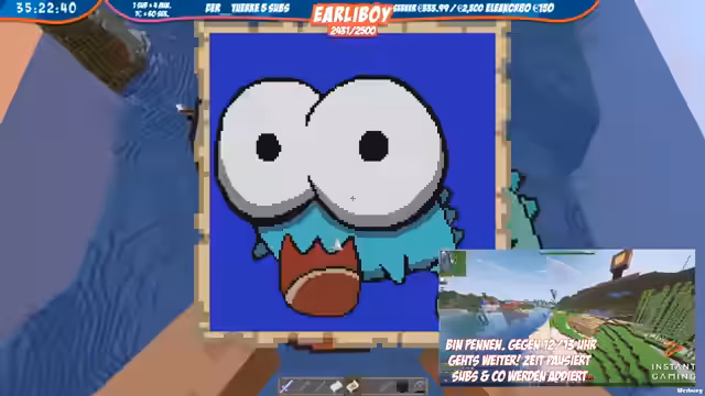 23:09:53Es wurde enthüllt, dass ein großes Bauprojekt im Todesstern realisiert wurde, das auf einer Idee aus dem Chat basiert. Dieses Projekt, das sich als äußerst aufwendig erwies und mehrere Tage in Anspruch nahm, ist noch nicht vollständig abgeschlossen. Es handelt sich um den Bau von Bikini Bottom, der Unterwasserstadt aus Spongebob Schwammkopf, innerhalb einer Etage des Todessterns. Für dieses Vorhaben wurden bereits 6.500 Glasblöcke verbaut und das Wasservolumen beträgt 177.000 Blöcke. Um dies zu realisieren, wurde mit Hilfe von Klim eine temporäre Wasserquelle an der Oberfläche geschaffen, bevor das gesamte Dirt wieder abgebaut wurde. Zudem wurden fünf Stunden lang Fische gefarmt, und es ist geplant, auch Delfine und Tintenfische hinzuzufügen. Die Spongebob-Ananas ist bereits fertiggestellt. Dieses Projekt ist so umfangreich, dass sogar überlegt wurde, ob es im Notfall von anderen Spielern übernommen werden könnte, die die Materialien gebrauchen könnten.