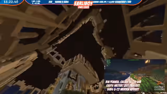 20:32:51Der Streamer entdeckt einen Geheimgang, der zur Retner Base führt, und zeigt sich begeistert von den versteckten Eingängen und der Gestaltung der Base mit Netherbricks. Er lobt Schattenwolf für die durchdachte Bauweise und vergibt drei von drei Bananen als Bewertung. Anschließend wechselt er zu Glimmi auf dem Zap-Server, um Wolfsherz's Burg zu besichtigen. Die Burg, obwohl thematisch nicht ganz zur Wüste passt, beeindruckt durch ihre detailreichen Strukturen. Es wird über die Ästhetik von Granit und Diorit diskutiert, wobei der Streamer Granit als hässlich empfindet. Die Bauarbeiten an der unterirdischen Stadt Noxgard verzögern sich, und es wird eine Spinnen-Farm entdeckt. Der Streamer zeigt sich beeindruckt von der Motivation, die hinter dem Bau steckt, und spekuliert über die Zugehörigkeit zu Game of Thrones. Er bittet Wolf oder andere Zuschauer, dies in den Kommentaren aufzuklären und erinnert daran, dass Grundstücke nach der Besichtigung aus der Liste entfernt werden, es sei denn, es handelt sich um ein neues Projekt oder signifikanten Fortschritt.