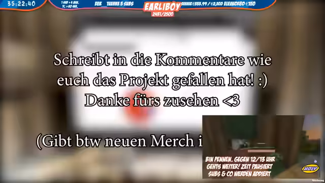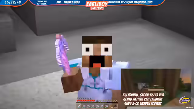02:02:07Der ursprüngliche Plan, den Stream bis Dienstag laufen zu lassen, wird geändert, da der Streamer an Mittwoch- und Donnerstagabenden nicht verfügbar ist. Am Dienstagabend ist er mit seiner Oma bei "Let's Dance", da sie Tickets zum Geburtstag erhalten hat, und am Donnerstag feiert seine Oma Geburtstag. Aufgrund der Überschreitung der geplanten Stunden auf dem Timer wird der Stream nun länger laufen, und es wird versprochen, dass täglich mindestens 12 Stunden gestreamt wird. Es gibt einen Rabatt von 35% auf "Gifflitzatz", der bis heute Nacht aktiv ist. Zudem wird das "Donation Goal" für einen Community-Server beworben. Ziel ist es, mit 150 Leuten aktiv Minecraft zu spielen und Events wie früher zu veranstalten. Der Streamer hat viele Ideen und ist zuversichtlich, dass der Server "10 von 10" wird.
