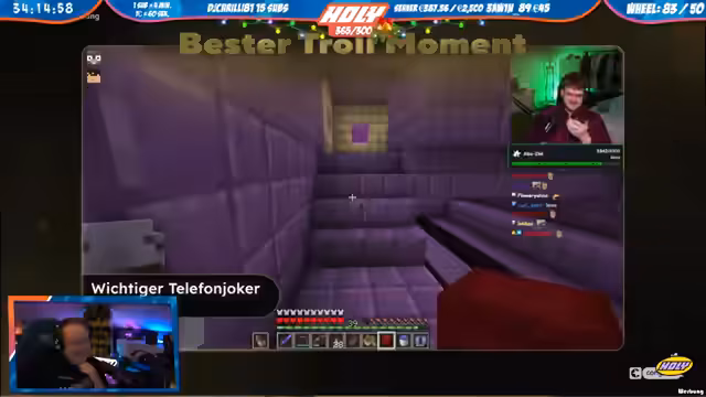02:56:37Im Rahmen des Minecraft-Spiels werden Ideen für Verzauberungen geteilt. Es werden die verbleibenden Netherrack-Vorräte gezählt und Optionen für das Feuerzeug wie Mending, Fire Aspect oder ein Obsidian-Finger diskutiert. Der Streamer entwirft zudem einen I-Punkt aus Obsidian, um die Trollaktion gegen Felika aufzuwerten, wobei der Plan geplant wird, ihr bei einer Verlierer-Wette eine bestimmte Textzeile in eine Rede einbauen zu lassen.