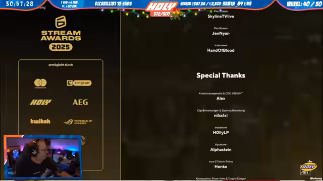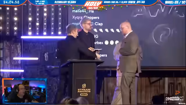 04:09:06Die Stream Awards 2025 offiziell eröffnet. Nach über 40.000 Einsendungen und 4,6 Millionen Votes werden die Moderatoren No Way und Rebi auf die Bühne gebeten. Eine große Statistik wird geteilt, die mit 227.000 Usern die enorme Reichweite des Events unterstreicht. Es werden 25 Kategorien vergeben, einige davon neu, und das transparente Voting-System aus Community-Voting, Mod-Jury und Fach-Jury wird kurz erklärt.
