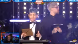 04:41:36Nachdem der Shock über NoBers Zustand verarbeitet wurde, wird das Ergebnis der Jumpscare-Kategorie bekannt gegeben. Ein Clip, der als 'episch' beschrieben wird, gewinnt und der Preis wird an Gronkh verliehen, der jedoch nicht persönlich anwesend ist. Eine Videobotschaft von ihm wird abgespielt. Der Moderator nutzt die Gelegenheit, sich für die ältere Generation im Internet stark zu machen und erwähnt ein bevorstehendes Charity-Event namens 'Friendly Fire'.