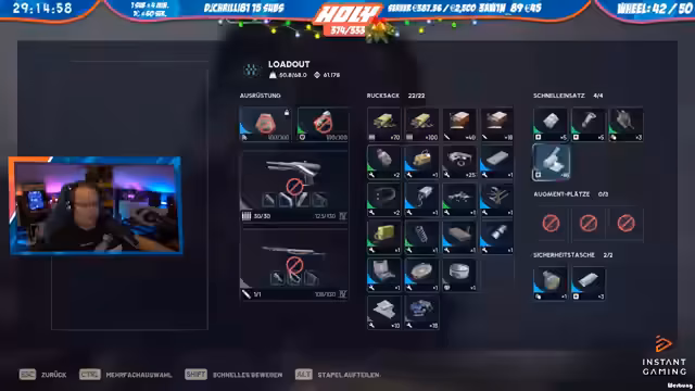 11:15:15Nach einem verlorenen Gefecht wird die Rundenbilanz betrachtet und die Notwendigkeit, das Inventar zu verwalten, betont. Der Streamer entscheidet sich für eine neue Runde mit Freeloadout, eine Art Scav-Runde, in der man mit zufälliger Ausrüstung startet. Dies wird als Möglichkeit genutzt, um Ressourcen ohne Einsatz der eigenen Haupt-Ausrüstung zu sammeln. Es wird erläutert, wie man das Gratis-Loadout auswählt, und die Entscheidung getroffen, statt dessen mit der eigenen optimierten Ausrüstung erneut einzusteigen.