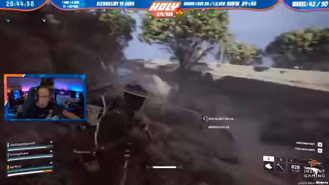09:52:30Die Situation eskaliert zu einem schweren Kampf in einem Gebäude. Der Streamer kämpft gegen mehrere Gegner, die teilweise im Versteck agieren. Es werden Granaten eingesetzt und hektische Fluchtversuche unternommen. Der Kampf endet mit dem Tod eines Gegners und einem erfolgreichen Auszug, allerdings mit Verlusten an Munition und Ausrüstung.
