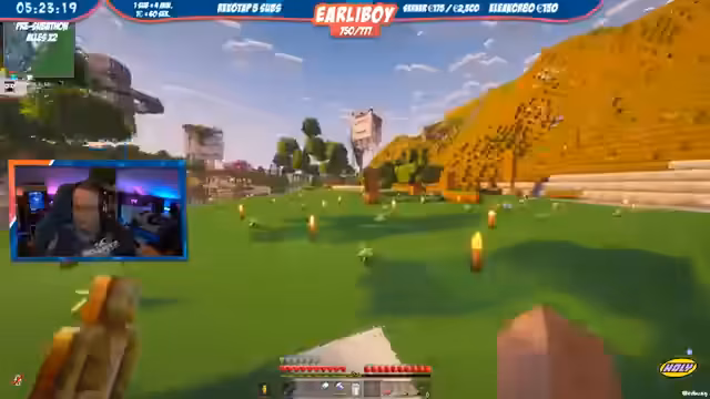 07:08:14Ein Konflikt zwischen dem Streamer und Fuchsel eskaliert nach gegenseitigen Provokationen und Angriffen. Fuchsel hat dem Streamer Items vorenthalten, woraufhin er mit TNT droht und deren Kisten sprengt, um Druck auszuüben. Fuchsel reagiert, indem sie seinerseits sein Haus sprengt und ihm den Krieg erklärt, was eine Spirale aus Zerstörung und Provokation auslöst.