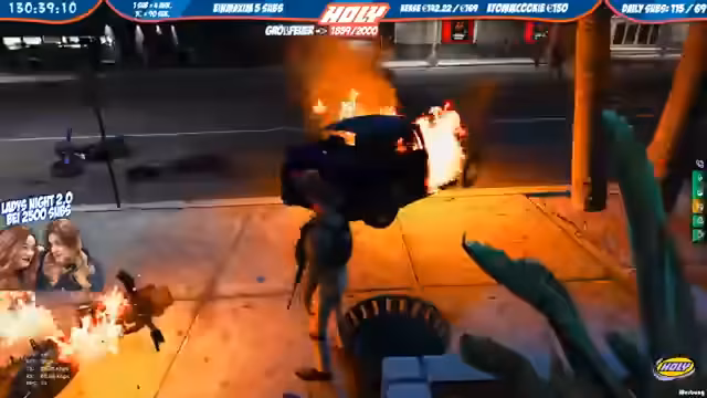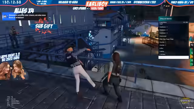 06:35:10Ein Großfeuer bei den Koordinaten 1850 fordert die Einsatzkräfte heraus. Der Streamer ist im Einsatz und muss das MRPD für die Löscharbeiten freigeben, was zu einer Absperrung führt. Währenddessen werden im Stream Spender unterstützt, darunter ein Tier-2-Resub für 48 Monate. Es gibt auch eine Wette im Chat, wer zuerst springen wird, was für eine kleine Show sorgt und den Hypetrain des Monats weiter befeuert.