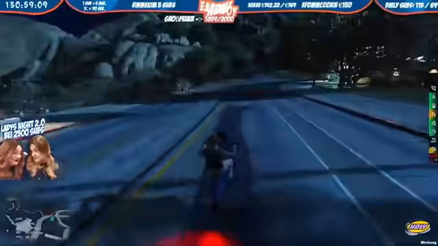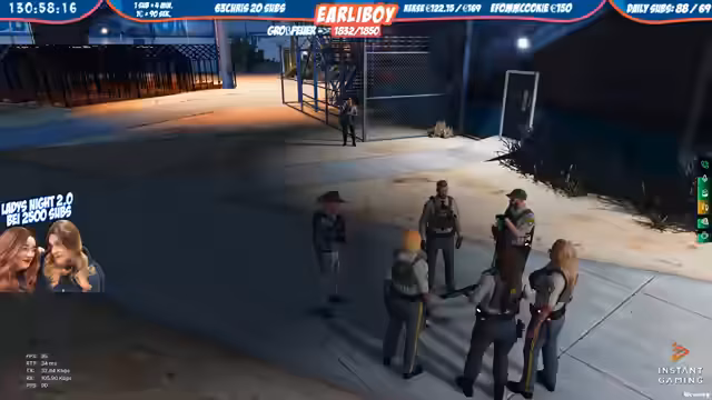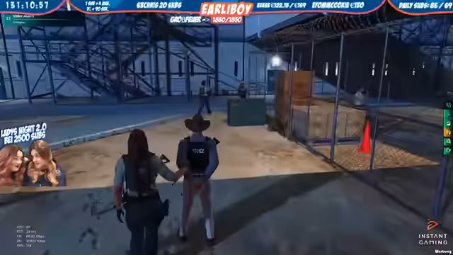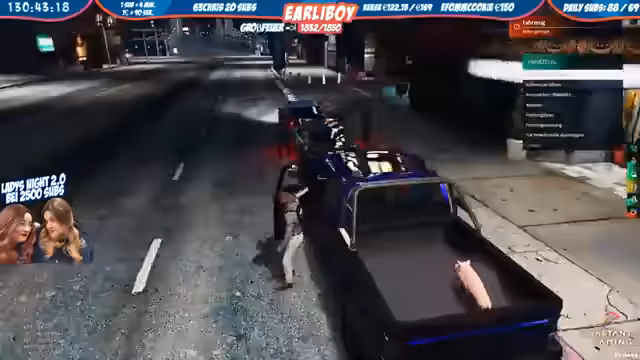07:38:46Ein Highlight des Streams ist eine aufwändige Polizeiverfolgungsjagd. Es geht die Suche nach einem gelben Tailgater mit schwarzen Streifen, der auf der Flucht ist. Während der Fahrt werden verschiedene Routen durch die Stadt genommen und es kommt zu einem Zwischenfall, bei dem der Verfolgte ein Polizeiauto tritt. Nach der erfolgreichen Festnahme wird der Einsatz beendet.