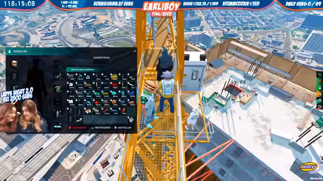 02:30:06Als Alternative wird beschlossen, auf einen Kran zu klettern, was in einer äußerst anstrengenden und körperlich belastenden Aktion gipfelt. Unterdessen wird ein Teammitglied versehentlich von der Polizei erschossen, was zu Verwirrung und Trauer führt. Nachdem die Situation auf dem Kran als unhaltbar empfunden wird, wird der Plan, mit einem Hubschrauber zu fliehen, wieder aufgenommen. Der Stream endet damit, dass der Streamer versucht, sich bei Sun einzustempeln, während seine Teamkollegen weiter auf dem Kran gefangen sind.