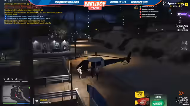 04:08:29Das Funkspiel geht weiter. Es wird die Abholung einer Person namens Heiko erwähnt und humorvoll aufgenommen. Anschließend geht es darum, eine vermisste Person mit Hilfe eines Lassos zu fangen. Der Streamer unterhält sich währenddessen mit verschiedenen Personen im Funk, um Koordination und die weitere Vorgehensweise abzustimmen.