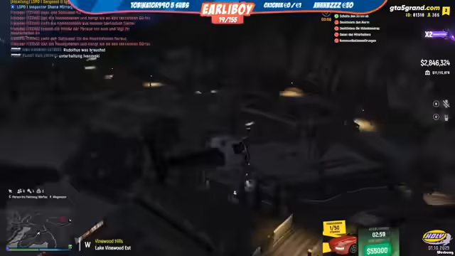 02:59:23Nach einem kurzen Diskurs wird erwähnt, dass ein Fahrzeug auf dem Einsatzplatz zurückgelassen wurde. Der Streamer stellt fest, dass jemand das Auto eigenständig zurückgebracht hat. Die Patrouillenfahrt wird fortgesetzt und führt von Rockford Plaza Richtung Norden und Westen, vorbei an EMS, LSC und dem Museum, wobei die Route und die Standorte der Kollegen im Fokus stehen.