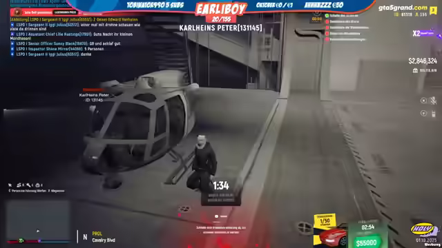 05:59:56Das State wird anscheinend gerade überfallen. Es wird festgestellt, dass alle Sachen weg sind und man sich im State umziehen muss. Es wird die Frage gestellt, wo man sich umziehen kann, da es sich um ein neues MLO handelt. Es wird die Frage gestellt, wo die Umkleide ist und sich im neuen Gebäude nicht zurechtgefunden. Es wird sich bei Frau Hunter für die Hilfe bedankt und gefragt, wo die Waffenkammer ist. Es wird gesagt, dass die Frage, wie es mit Bewerbungen aussieht, immer wieder gestellt wird und die Bewerbungsphasen Mittwochs und Samstags um 18.30 Uhr stattfinden. Es wird sich verabschiedet und gesagt, dass man nicht so viele Geiseln am Stirn nehmen soll. Es wird sich Mühe gegeben, sich zurückzuhalten.