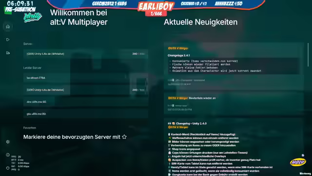 Die aktuelle GTA RP-Session in Unity-Life ist geprägt von Fehlerbehebungen, insbesondere beim Inventar. Gesundheitliche Probleme und Termine des Streamers verzögern die Entwicklung. Es gibt Diskussionen über NoPixel 5.0, Personalangelegenheiten im Taxi-Unternehmen, Crash-Tests, Ingame-Events und die Feuerwehr-Simulation. Auch Urlaubsplanung und Filmempfehlungen werden thematisiert.