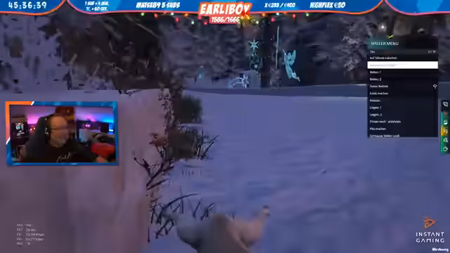 03:11:40In einer Kooperation mit Anja wird eine aufwendige Weihnachtsmap in einem Spiel präsentiert. Earliboy hat eine Überraschung für Anja vorbereitet, die bei Erreichen von 300 Subs für Anja freigeschaltet wird. Die Map beinhaltet einen Weihnachtsmarkt mit Bastelstationen, eine Rentierfarm und spezielle Quests. Durch Subs der Community wird die 300er-Marke geknackt und die Überraschung enthüllt. Anja reagiert emotional auf das Geschenk.