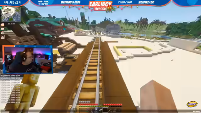 04:24:37Eine neu konstruierte Minecraft-Achterbahn wird detailliert präsentiert, einschließlich dualer Gleise, Aufstiegsrampen und Loopings. Der Streamer demonstriert die Funktionsweise, darunter automatisierte Fotofunktionen für Fahrer, und plant Erweiterungen wie Ziel-Schießmechanismen in einer Geisterstadt-Kulisse. Dies unterstreicht kreative Bauprozesse.
