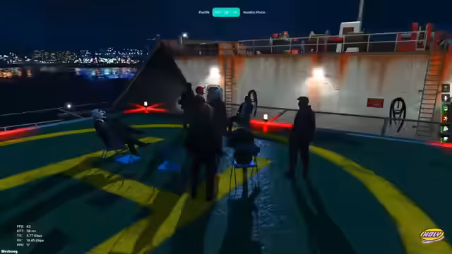 06:16:05Die Koordination der Fahrzeuge wird sichergestellt. Fünf Tailgater und drei Helikopter stehen bereit, wovor die Fahrzeuge unauffällig lackiert sind und ohne Kennzeichen gefahren werden, um Ortung zu erschweren. Die Zugriffsrechte für die Fahrzeuge werden an die teilnehmenden Mitglieder verteilt. Für die Kommunikation werden Primär- und Sekundärfunkkanäle eingerichtet, über die die Gruppe miteinander spricht und gleichzeitig Polizeifunkkanäle wie SPI, SAP und Dispatch abhört, um über eventuelle Entwicklungen informiert zu bleiben und schnell reagieren zu können.