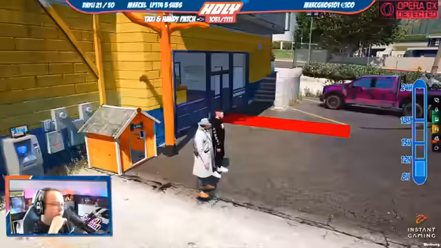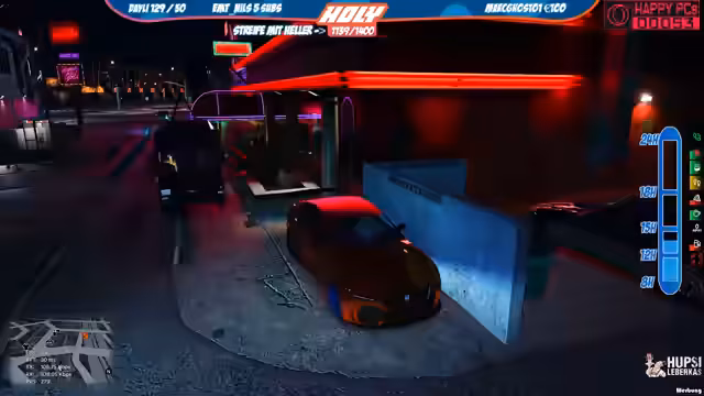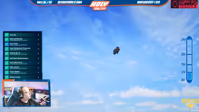 11:25:03Der Stream beginnt mit einer intensiven Verfolgungsjagd im Spiel. Der Spieler versucht, eine andere Person zu finden, nachdem er Meldungen über einen möglichen Unfall auf dem Nordring erhalten hat. Die Suche führt ihn durch verschiedene Stadtteile und immer wieder zurück zum Krankenhaus (EMS), wobei er unter anderem einen Zug und eine Vielzahl von markanten Orten wie einen Golfplatz und ein Planetenstudio passiert. Die Verfolgung ist geprägt von hohem Tempo, abrupten Richtungswechseln und einer großen Menge an Chat-Interaktion, die den chaotischen Charakter der Situation unterstreicht.