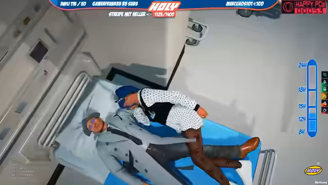 07:40:05Der Rettungsdienst lässt trotz des Notrufs extrem lange auf sich warten. Es vergehen etwa vier Minuten, ohne dass eine Einheit eintrifft. Der Streamer frustriert, dass alle Einsatzkräfte offenbar zu einem parallel laufenden Juwelierraub abkommandiert sind. Hans-Peters Zustand bleibt kritisch, da er stark blutet. Das Blut sickert durch den Boden, und die Situation bleibt angespannt. Der Streamer gibt nach 14 Minuten die Hoffnung auf, dass Hans-Peter ohne medizinische Hilfe überleben wird.