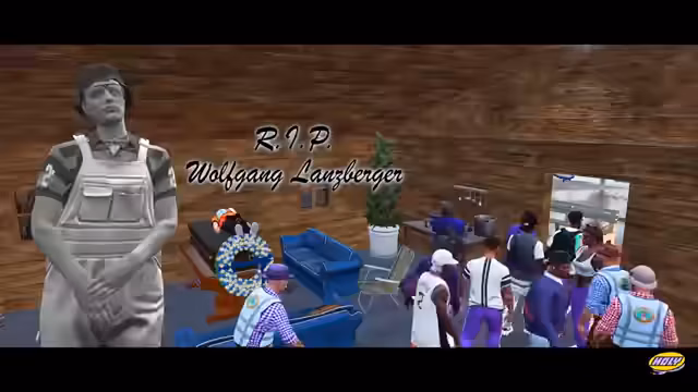 06:06:11Die Trauerzeremonie für Volli findet im Stil einer kriminellen Organisation statt. Der Sarg wird mit einer Flagge bedeckt und feierlich getragen. Ein Mitglied hält eine emotionale Grabrede, in der es von seiner langen Freundschaft zu Volli spricht und ihn als 'sugar daddy' und 'daddy' bezeichnet. Die Szene ist von tiefer emotionaler Betroffenheit geprägt und symbolisiert das offizielle Ende der langjährigen Mitgliedschaft von Volli in Franzövanien.