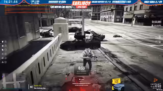 00:00:00Zu Beginn des Streams ereignen sich auf dem East Highway ungewöhnliche Szenen, als versucht wird, mit Nagelbändern Fahrzeuge zu stoppen. Eine Drohne wird zur Überwachung eingesetzt, um die Auswirkungen der Nagelbänder zu beobachten. Es kommt zu Verkehrskontrollen und Diskussionen über die Rechtmäßigkeit der verwendeten Methoden. Im weiteren Verlauf wird ein Raubüberfall gemeldet, und es kommt zu einer Verfolgungsjagd, bei der ein Verdächtiger festgenommen wird. Während der Festnahme gibt es Kommunikationsprobleme und Diskussionen über das korrekte Vorgehen. Der Verdächtige wird abgeführt, und es wird spekuliert, ob sich weitere Komplizen im Kofferraum des Fahrzeugs befinden könnten. Es wird entschieden, den Festgenommenen an einem abgelegenen Ort freizulassen, damit er sich selbst ein neues Auto besorgen kann. Die korrupten Cops sind sich ihrer Sache sicher und verhöhnen den Verdächtigen noch. Es wird überlegt, ob man ein Nagelband hinterlassen soll, um weitere Aktionen zu verhindern, aber man entscheidet sich dagegen und beobachtet die Situation stattdessen mit einer Drohne. Die korrupten Cops fahren zur Tankstelle, um das Auto zu reparieren.