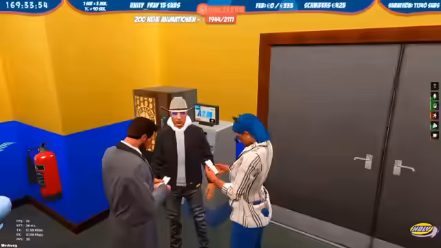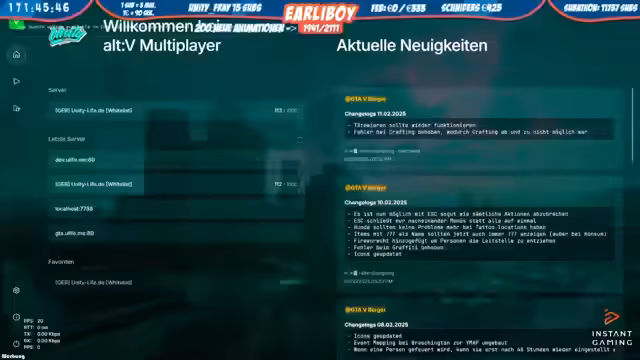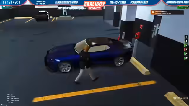 04:45:32Nach einer Verfolgungsjagd durch die Innenstadt wird ein Verdächtiger an der Sternkopf vom EMS gestellt. Im Verlauf wird eine Person festgenommen, während andere flüchtig sind. Der Streamer erläutert Details der Festnahme und die Vorgehensweise bei der Durchsuchung der Person. Eine Munitionsabnahme und der Transport in die Zelle werden erwähnt. Gleichzeitig wird die Lage an der Staatsbank beobachtet, und die Ermittlungen zur Identität der Verdächtigen und zum Hergang des Vorfalls aufgenommen. Es kommt zu einem Disput mit einer Person in einem blauen Fahrzeug, die sich nicht an Anweisungen hält.