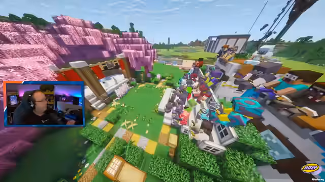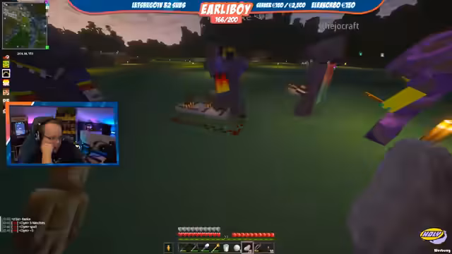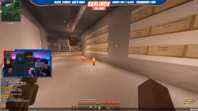 04:50:28Spark bringt eine Kiste voll Gras für die Gasfarmen. Die Materialien sollen zur Nether-Decke gebracht werden, um sie dorthin zu schaffen. Es wird über die Koordinaten der Nether-Decke gesprochen. Der Bau einer Gasfarm neben der Froglight-Farm wird vorgeschlagen, um beide gleichzeitig laden zu können. Der Streamer organisiert schwarzen Beton und Smooth Basalt für den Bau. Es wird über die Bannung von Basti diskutiert, wobei der Chat meint, Basti sei morgen wahrscheinlich wieder entbannt. Die Bühne wird als sehr schick gelobt, und der Streamer bedauert, dass er selbst zwei Stunden für eine kleinere Bühne gebraucht hat, während Klim in fünf Minuten etwas Dreimal so Gutes gebaut hat. Es wird über die Froglight-Farm gesprochen, die ein Co-op-Projekt mit Blizzard ist. Ein Endrod wird benötigt, und es wird über das Design von Bannern in Form von Lautsprechern diskutiert. Die Spieler sammeln rote Farbe und planen das erste Event für morgen um 18 Uhr. Die Demon Slayer werden für ihren heftigen Bau gelobt. Es wird über das Mob-Voting und die Phantome diskutiert, wobei der Streamer zugibt, für die Phantome gestimmt zu haben, da er dachte, es wären Rochen im Wasser. Es werden Cherry Saplings und Knochenmehl für die Gestaltung der Bühne benötigt, um Bäume als Designelemente zu pflanzen.