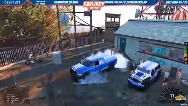 06:02:57Nach einem gescheiterten Fluchtversuch mit einem Lastwagen gerät die Einheit in eine komplexe Geiselnahme-Situation. Ein Streamsniper im Chat wird gebeten, eine Waschmaskenmaske zu beschaffen. Der Notruf führt zu einem Einsatz, der in einer Geiselnahme im Geschäft endet. Die Situation ist chaotisch: Waffen funktionieren nicht zielsicher, die Kommunikation ist gestört und eine Verhandlung wird unter Druck aufgenommen, die schnell in eine absurde Auktion über den Wert von Geiseln und unkonkrete Forderungen abgleitet.