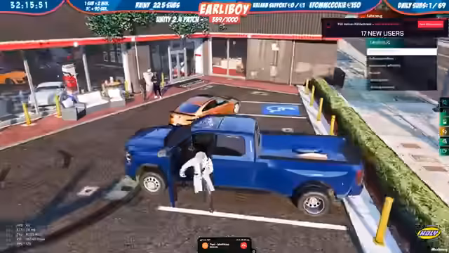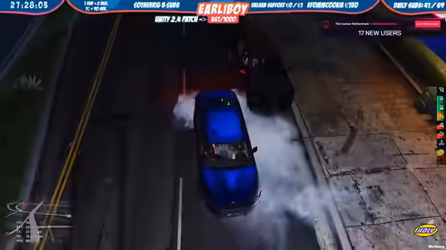03:17:05Im Stream werden kriminelle Handlungen und die daraus resultierende Verfolgung durch die Polizei thematisiert. Es geht um das Besorgen von Waffenscheinen, das Eingeständnis, ein Krimineller zu sein, und beleidigende Auseinandersetzungen. Der Fokus liegt auf einer Fahrt durch verschiedene Lagerhäuser, bei der die Streamer vermeintlich von einer rivalisierenden Bande beobachtet werden. Es kommt zu verbalen Attacken, als ein Beteiligter beleidigt wird und ein anderer Tourette-Syndrom vermutet. Die Szene ist geprägt von Nervosität und der Vorbereitung auf Konfrontationen.