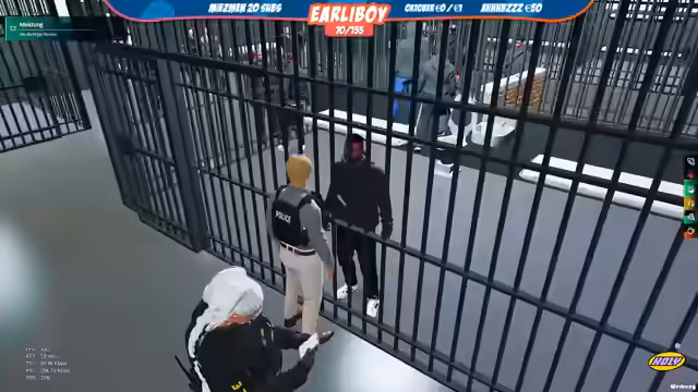 01:17:07Es gibt ein dezentes Problem im State, einem Hochsicherheitsgefängnis. Ein Liefereinsatz steht an, kann aber nicht durchgeführt werden, weil die Häftlinge keine SIM-Karten haben, um Nachrichten zu lesen und zu empfangen. Der Streamer analysiert, dass dieses Feature möglicherweise seit einem Patch kaputt ist. Dies führt zu einer Diskussion über die Funktionalität des 'Farmings', also der Möglichkeit, im Gefängnis Geld zu verdienen, und die Rentabilität im Vergleich zu verkürzten Haftstrafen durch den 'Löffel'. Ein Häftling hat versucht, auszubrechen, was zu einer Einsatzsituation für die Polizei führt. Das Ziel ist es, die Insassen festzusetzen und zu durchsuchen, um kontrabande Gegenstände wie Waffen oder Drogen sicherzustellen.